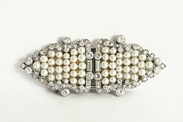 Art Déco Kleiderclip mit Perlen und Brillanten